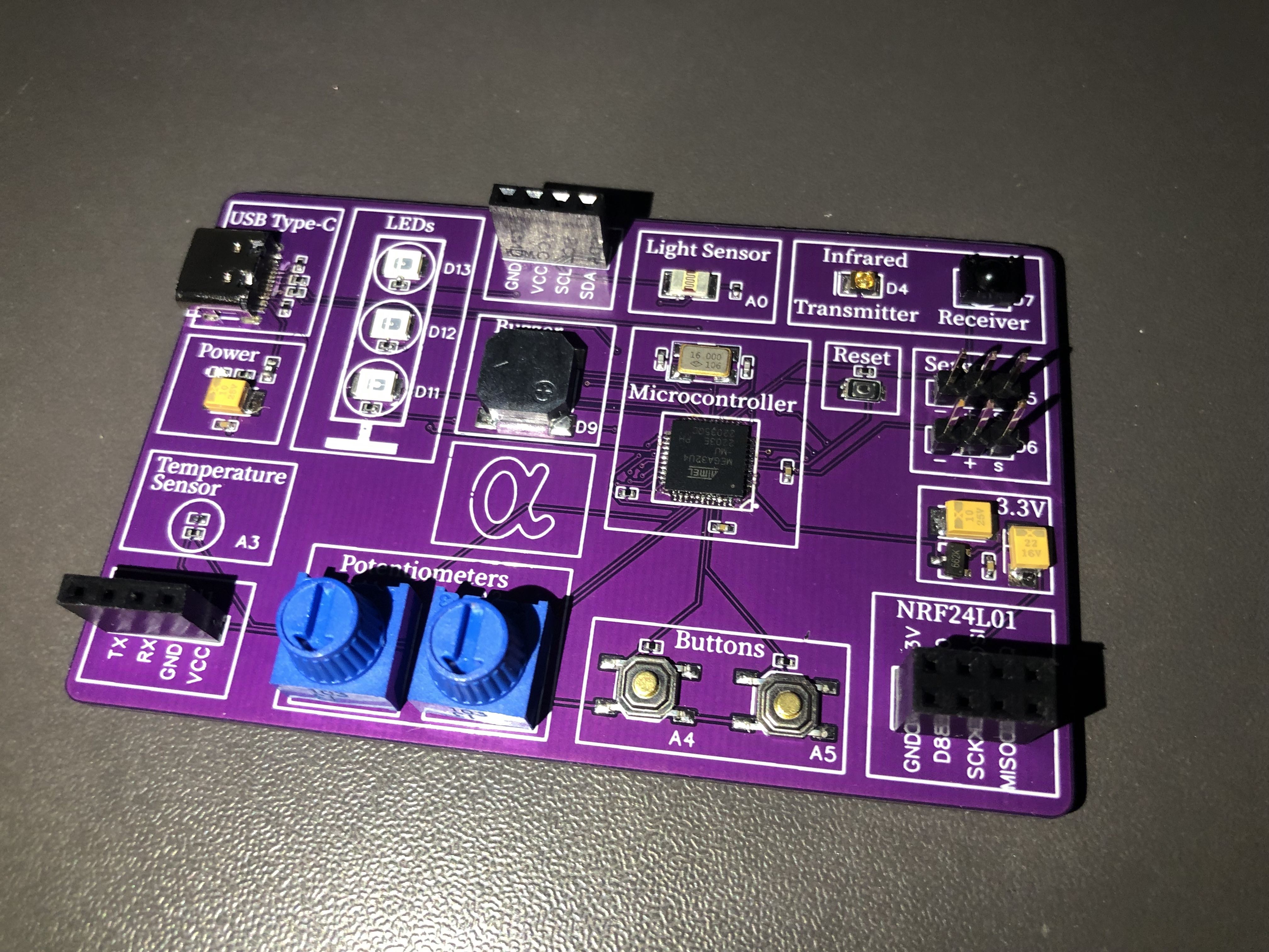 A prototyping board based on Atmel 32u4 microcontroller