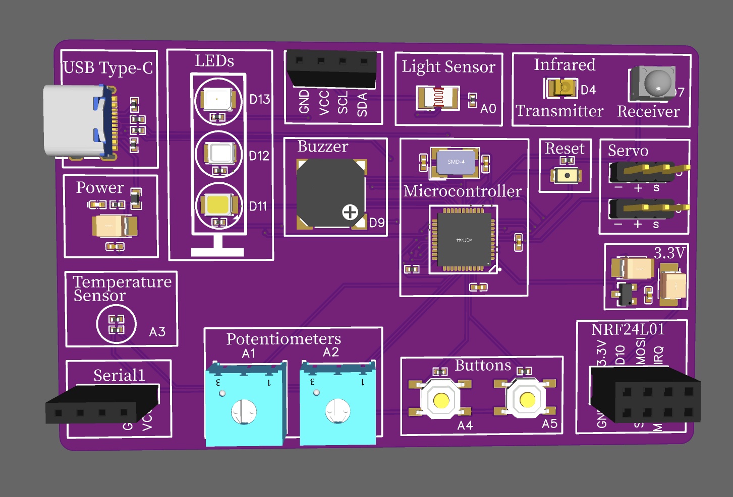 A prototyping board based on Atmel 32u4 microcontroller